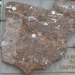Az albergue bárja még nem volt nyitva reggel, ígyhát a reggeli összecókmókolás után tovább is indultam. Az első útba eső település az alig 2-3km-re levő Altapuerca nevű kis falu volt. Az első bárnál megálltam és megreggeliztem a már standardnak számító croissant és tejeskávé együttest. Az út még mindig hegytetőn át vezetett, ám már folyamatosan enyhén emelkedett csak az út. A hegytető egy sziklás részén egy, a már előző napihoz hasonló, de annál jóval nagyobb kerületű kőspirál volt látható, a közepén egy kis kőhalomból kiálló fakereszttel. Nem messze, még látótávolságban innen egy nagyobb kőhalomból egy magas, 6-7mes fakereszt állt ki, a kőhalom aljában zarándokok által otthagyott ruhákkal, kis emléktárgyakkal. A keresztet elhagyva egy kövekből az útra kirakott nagy kő-nyíl mutatta az utat. Az út innentől Burgosig már csak lejtett. A hegy aljában egy darabig műúton vezetett az út. Az egyik kis portán, egy ócska használaton kívűli busz oldalán hatalmas és szép grafikával megfestett graffiti reklámozott egy közeli alberguet; pár kilométer múlva egy ház oldalán humoros graffiti egy megfáradt zarándokról üzente ugyanezt. A táj továbbra is nagyon szép volt. A műút lassacskán a nagyváros, Burgos bevezető szakaszába torkollott. Itt az út jobb szélén láthattam a San Miguel sörgyárat, melynek terméke jónéhányszor szomjamat oltotta egy-egy hosszú nap után. A Burgosba vezető út egyébként meglehetősen hosszú, még innen majd egy óra volt, mire a város központjába beértem. Burgos régi és nagy zarándokközpont és körülbelül idáig tart az út első harmada is. A város első körforgalmához érve egy monumentális fésűkagyló volt elhelyezve a körforgalom közepén, továbbá egy stilizált tök-kulacs. Ebben a városban sok helyen botlik az ember zarándokemlékművekbe, és a lakosság is hozzászokott a tavasz végi-nyári-ősz eleji zarándok-folyamhoz. Sok esetben a helyiek is előre köszönnek a „Buen Camino” formulával a zarándokoknak. A városban a modern, új építésű és a többszáz éves épületek természetesen keverednek egymással. Egy kisebb folyó hídján átkelve az ízléses utcákon gyalogolva érdeklődtem meg egy helybelitől, hogy merre a katedrális, aki útba is igazított. Nemsoká egy utca végén a szemem elé is került a monumentális épület. Valami fantasztikusan szép volt. Akkor úgy éreztem, ha más nem láttam volna, csak ezt az egy építményt, már akkor is megérte az Út. A katedrális háta mögött egy kis pihenőnél elszívtam egy cigit, és egy arrajáró zarándokot kértem meg egy fotóra, mielőtt lesétáltam volna más oldalról és belülről is megtekinteni a katedrálist. Éppen akkor ért véget egy mise is, melyet kihangosítva a katedrális előtti főtérre is közvetítettek, így az utca népének sem kellett az áldásosztásról lemaradnia. Odabent is szétnéztem. Nem akarom ezt ragozni, a képek lentebb majd beszélnek. A katedrális melletti padon ülő bronz „zarándokkal” még keszült egy közös képem, és tettem egy sétát a város sétálóutcáján is, mely nagyon szép formált fákkal volt szegélyezve (lentebb). Az itt eltöltött idő után megkerestem a következő sárga nyilat, mely az Utat jelezte, és azt követve elkezdtem kifelé sétálni a városból. A térkövekkel burkolt sétányon a városból kifelé sétálva még megcsodálhattam a város egyetemét, melynek régi épülete ugyancsak nagyon szép volt. Végül, egy körforgalom után a város is véget ért, és egy kavicsos úton folytathattam a gyaloglást. Az út egy autópálya alatt haladt el, és Tardajos nevű faluba vitt. Az egyetlen itteni albergue zárva volt még, én pedig a várakozás helyett inkább a továbbhaladás mellett szavaztam magamban és Rabá de las Calzadasban álltam meg ezen a napon. Itt a három albergue közül az egyiket kiválasztottam találomra, és elhelyezkedtem. Egyszerű, de szép albergue volt, zárható szekrénnyel. A megérkezés utáni teendőket letudva, kicsit körbesétáltam, és a helyi bárban kötöttem ki, ahol meguzsonnáztam, és egy időközben befutott brazil zarándokkal beszélgettem míg be nem sötétedett.